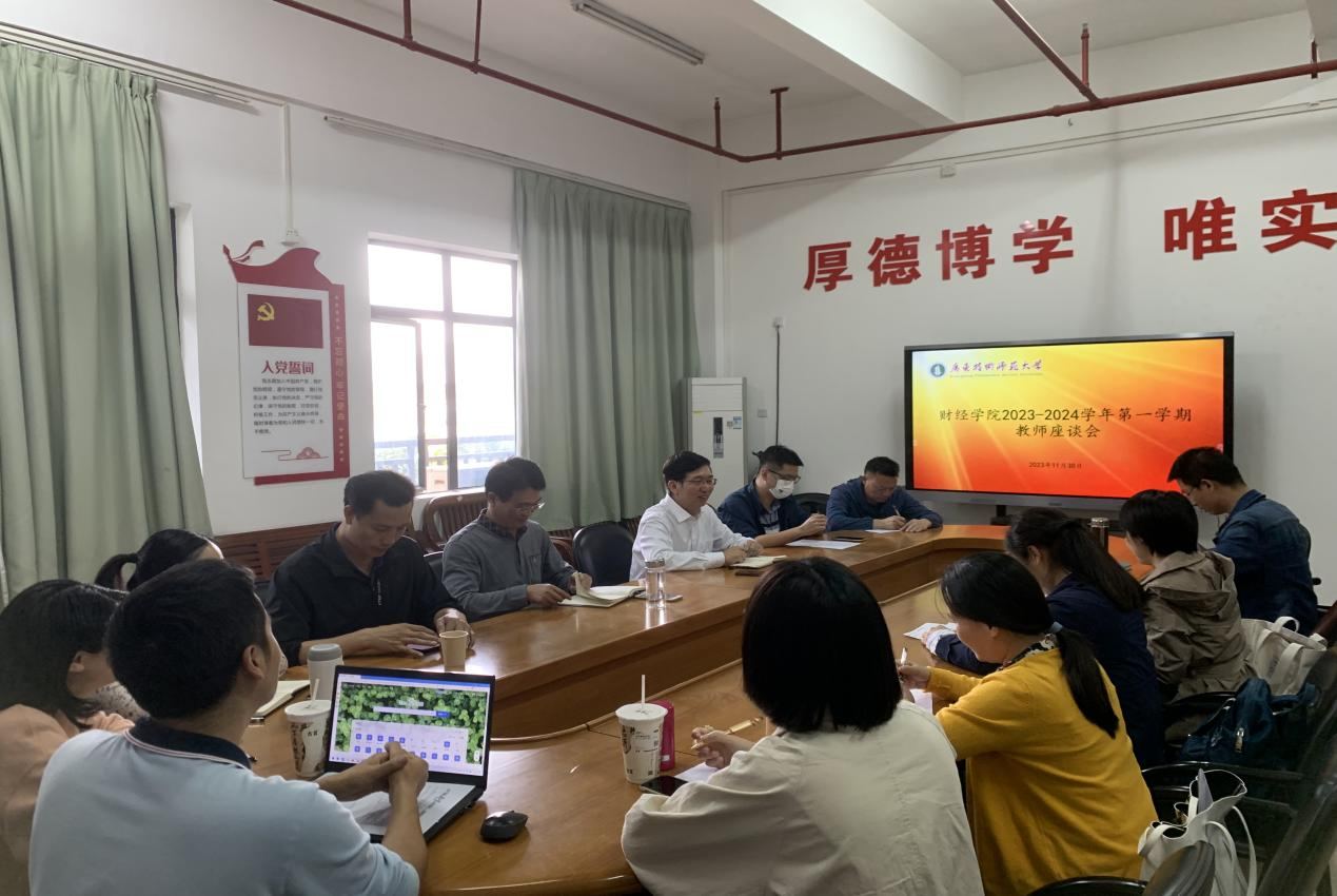 11月30日下午,taptap点点体育召开2023-2024学年第一学期教师座谈会,认真听取教师们对本学期教学工作的感想、意见与建议,进一步发挥“以评促建”的积极作用,推动教育教学高质量发展,以培养高素质财经人才为己任,以崭新的风貌迎接教育部教育教学评估。参加会议的有党委书记吴松、教学副院长刘国庆、系主任、专业负责人和各系教师代表。