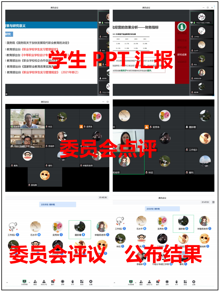 本次答辩采用腾讯会议进行。参与此次答辩的为我院1名全日制会计硕士和1名非全日制教育-职业技术教育(财经商贸)硕士研究生。答辩委员会由华南师范大学的屠新曙教授、暨南大学石水平教授、中山大学产业集团黄亮总会计师、广州财经商贸职业学校林敏莉高级讲师、以及我校taptap点点体育副院长林欣副教授组成,屠新曙教授担任答辩委员会主席。