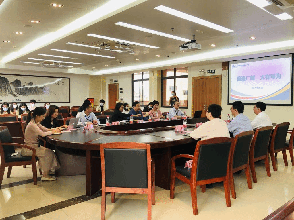 2021年10月15日上午,我院党委书记吴松、副院长刘国庆、财务会计教育专业负责人、硕士生导师蔡军教授、辅导员陈晓桁、研究生秘书吴秀珠,以及17名2020级职业技术教育(财经商贸)教育硕士、11名财务会计教育本科生前往我院教育实践实习基地----广州市财经商贸职业学校进行学习交流。