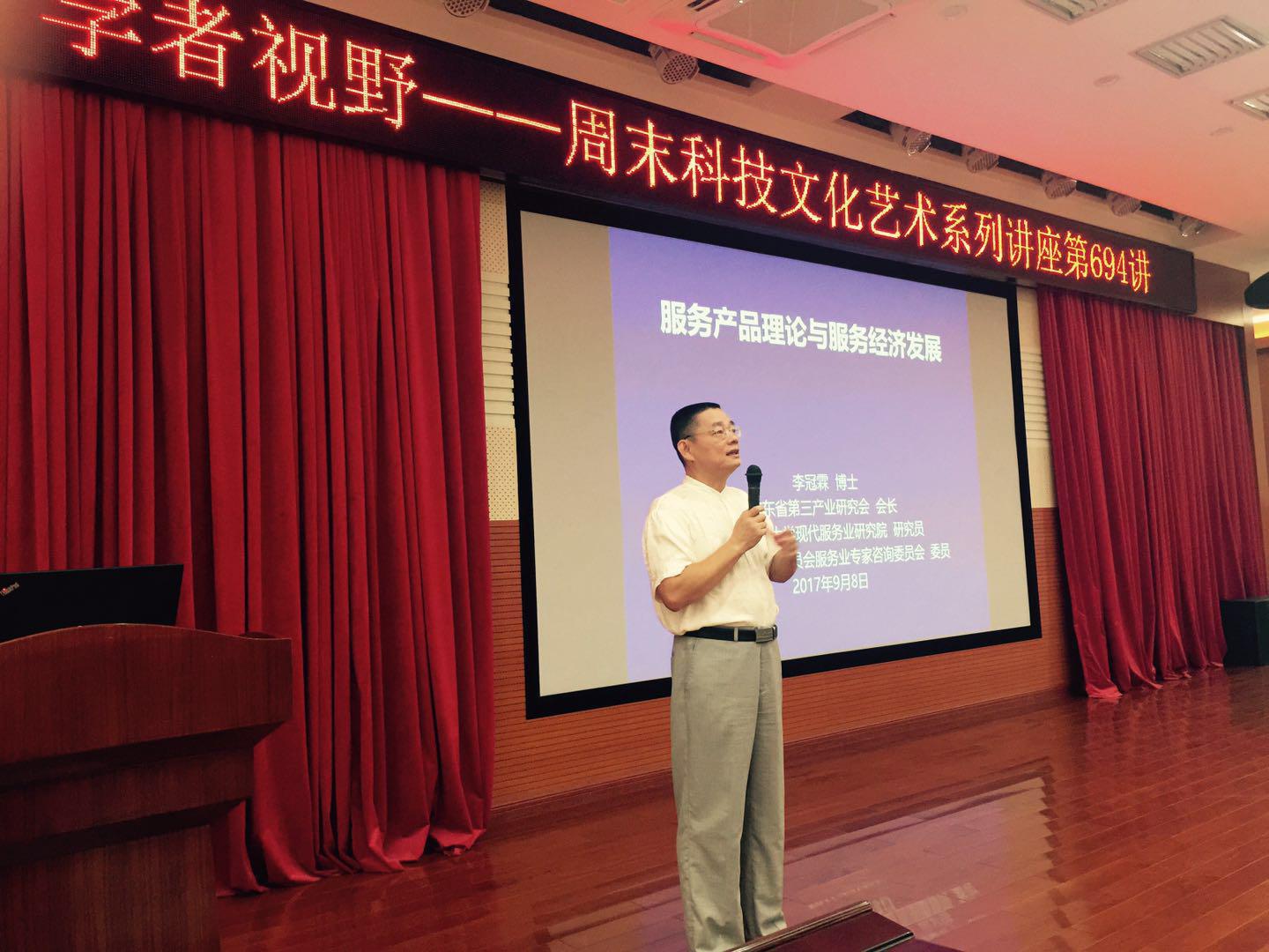 我院杰出校友、广东省第三产业研究会会长、华南理工大学现代服务业研究院研究员、国家发展和改革委员会服务业专家咨询委员会委员李冠霖博士为我院学子做了一场题为“服务产品理论与服务经济发展”的分享讲座。
