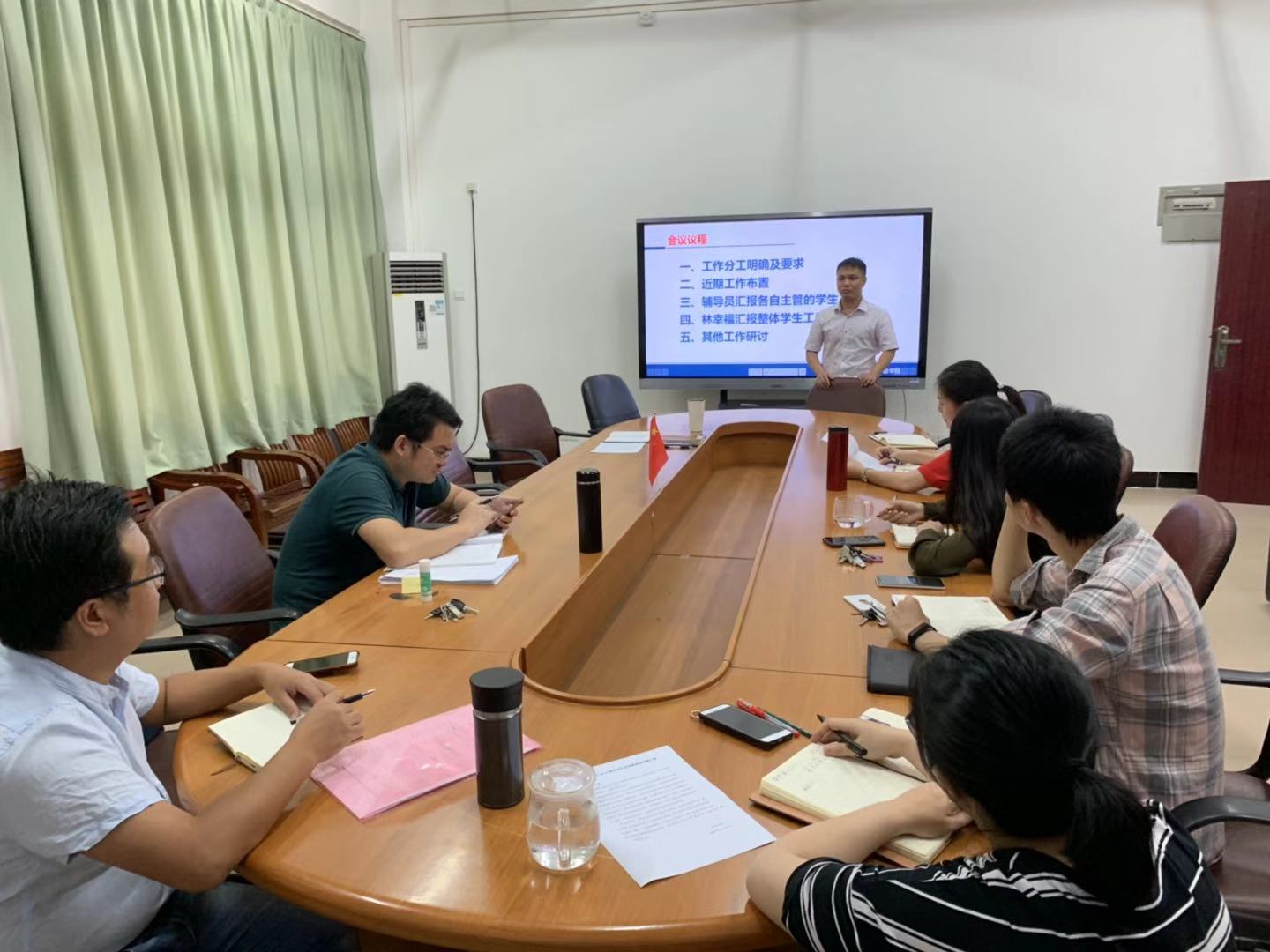 最后,林幸福书记还从以下几个方面提出要求,一是要求全体辅导员做好开学三查,即返校督查、班级深查和特殊人员排查;二是做好各工作模块的工作;三是做好迎新与军训的前期准备工作;四是做好党建、校园文化、主题教育等各项工作。最后,林幸福书记强调,各项工作要认真落实,辅导员近期要通过深入课堂、走访宿舍了解学生情况,以全新面貌迎接新学期到来。