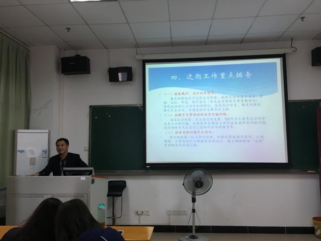 新学期学生日常管理工作会议主要从当前学生干部存在的主要问题展开,要求学生干部要找准角色定位、认清工作职责、加强班级管理、对班级情况如实汇报等,廖老师还对近期重点工作排查进行部署,尤其针对迟到、早退、旷课以及晚归问题的排查,特殊问题学生情况的登记以及新型网络诈骗问题的提醒等,都需要学生干部们在日常管理工作上把工作做细、做精、做好。