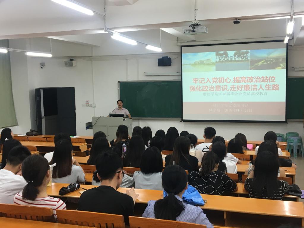 根据《关于做好我院2018年毕业生文明离校工作的通知》(广师院〔2018〕169号)、《关于开展庆祝建党97周年系列教育活动的通知》(广师党委〔2018〕83号)和广东技术师范学院转发的《走好廉洁人生路——致我院2018届毕业生的一封信》的有关指示精神,2018年6月27日19:00点-21:00点,taptap点点体育党委在白云校区三教214教室举行2018届毕业生党员文明离校教育暨庆祝建党97周年座谈会。taptap点点体育党委副书记林幸福同志参加会议并做主题报告。座谈会由taptap点点体育党政办支部书记兼学生第四党支部书记罗雄同志主持。