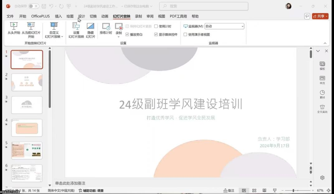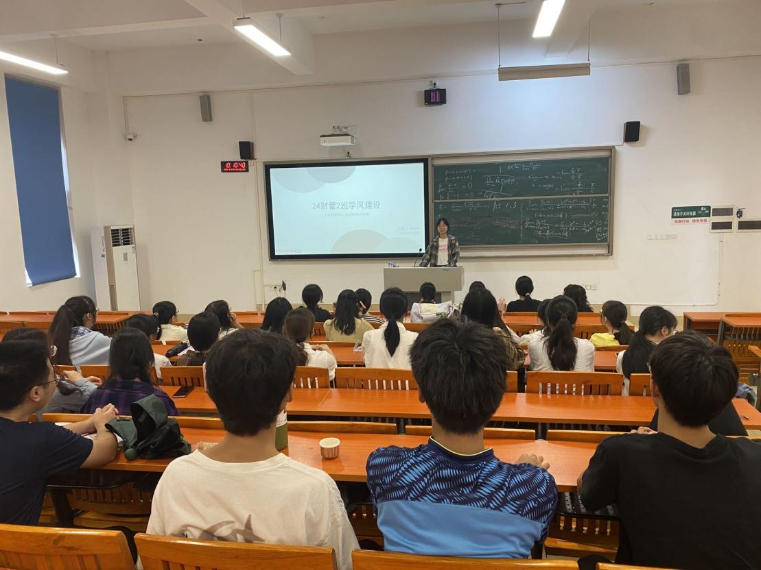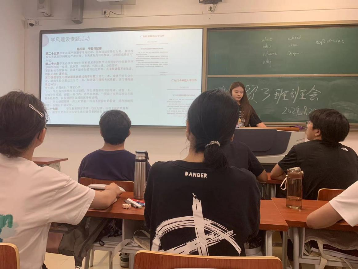 激发自律与强化他律,引领新生扣好大学“第一粒扣子”。在9月30号前,各班副班长和学习委员分批在各自班级开展学风建设主题班会,一方面播放《大学如何不虚度》短片,引导班级同学增强大学规划意识,激发学习内驱动力;另一方面向同学们传达学习部培训会议内容,学习学生手册和学位授予条例有关内容,规范班级考勤与请销假方式,引导班级同学学纪、知纪、明纪、守纪。