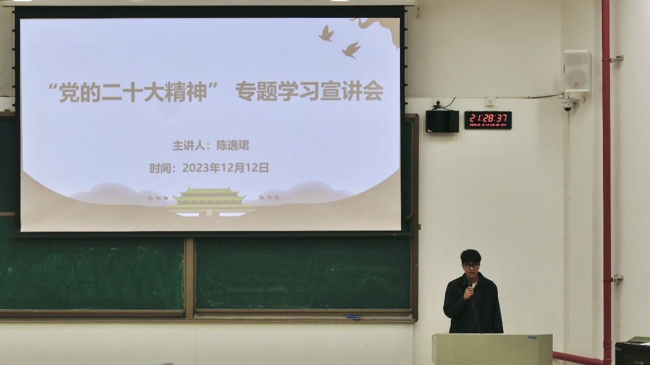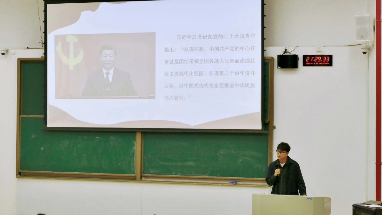 最后,陈逸珺老师向全体成员传达了习近平总书记在党的二十大报告中对当代青年的寄语,号召全体同学要坚定不移听党话、跟党走,怀抱梦想又脚踏实地,敢想敢为又善作善成,立志做有理想、敢担当、能吃苦、肯奋斗的新时代好青年。