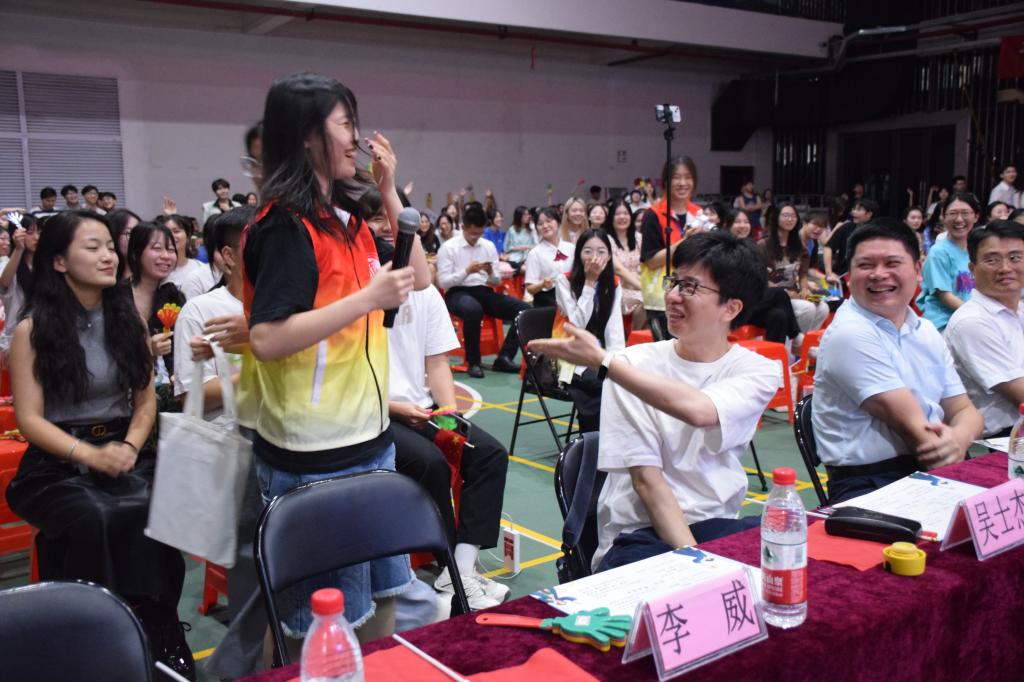 第一篇章结束之后,晚会进入了优秀团支部和先进班集体的颁奖环节,工作人员也精心策划的游戏互动,观众们可以通过听歌识曲的方式获取小礼品,现场气氛逐渐活跃。