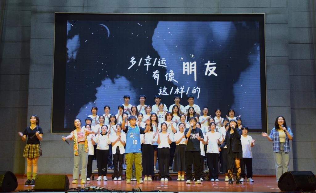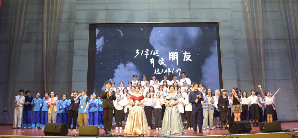 进入晚会的第三篇章“远方·乘风筑梦”,乐队感到《与浪之间》的演奏节目将青春的热情与乐器的同协完美结合,如同绚烂的烟花点亮了夜空,令观众感受到随流漂荡,听风澎湃的汹涌之情;舞蹈《苏区》以红色的旋律与舞蹈唤起我们的对祖国的深沉爱意;紧接着,朗诵节目《青春中国》用铿锵有力的声音,表达了新时代青年的浓烈的爱国热情和远大的人生航向;晚会的终曲,合唱《像你这样的朋友》,歌中所唱“多幸运有像你这样的朋友”引起观众潮水般热烈的掌声,为晚会画上了圆满的句点。整场晚会高潮迭起,惊喜不断,晚会结束后在场的领导、老师、表演人员和工作人员进行了合照留念,为本次活动画上了圆满的句号。