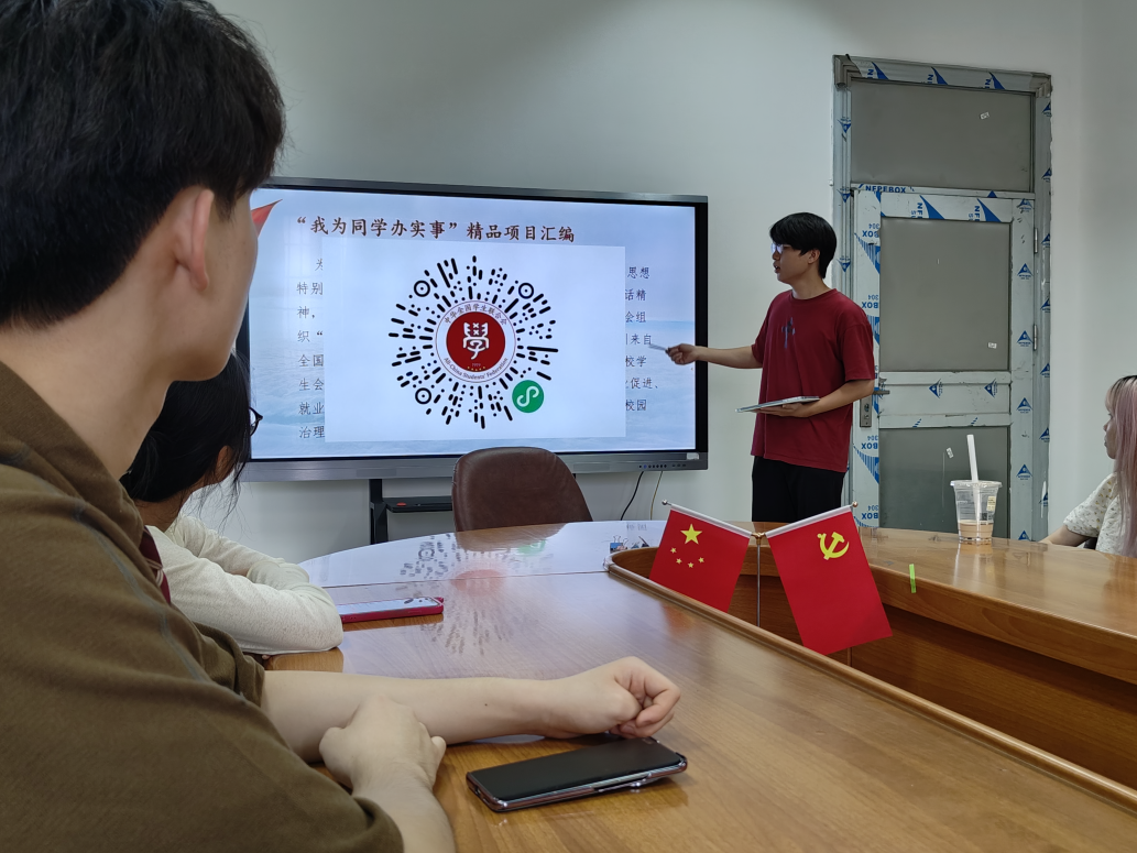 在集体学习会第三个环节中,主席团成员李锶立向大家介绍了“我为同学办实事”系列活动,组织大家一同学习了全国学联汇编的全国多所高校的精品活动项目,以此促进思维碰撞,拓宽服务同学的视野,为后续活动的策划与开展提供宝贵的参考与灵感,切实为同学办实事、解难题。