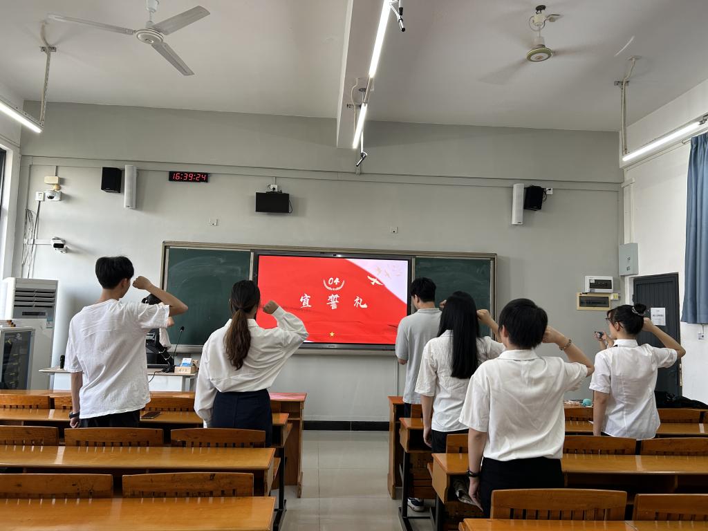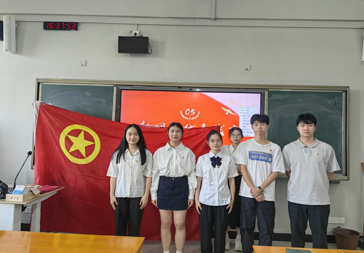 张慧滢同学作为新团员代表的发言,向我们表达了她加入团组织的激动与自豪。并表明决心,将时刻以团员标准要求自己。陈佳妮同学作为优秀团员代表发言,向新团员们表示热烈的祝贺,并与在座各位团员共勉,成就更优秀的自我,为团组织、党组织贡献自己的力量。紧接着,由陈逸珺老师向新团员提出希望与要求,陈逸珺老师向全体新团员表示热烈的祝贺,鼓励新团员们珍惜来之不易的机会,努力提升自己的能力的同时关注国家大事,争取向党组织靠拢。希望青年们做到坚定信念、勇毅前行;勇于创新、锐意进取;勇挑重担、艰苦奋斗,以青春之姿担当起党和人民赋予的历史重任,让青春在全面建设社会主义现代化国家的火热实践中绽放绚丽之花。旋律激昂的团歌《光荣啊,中国共青团!》在会场内响起,全体起立奏唱。