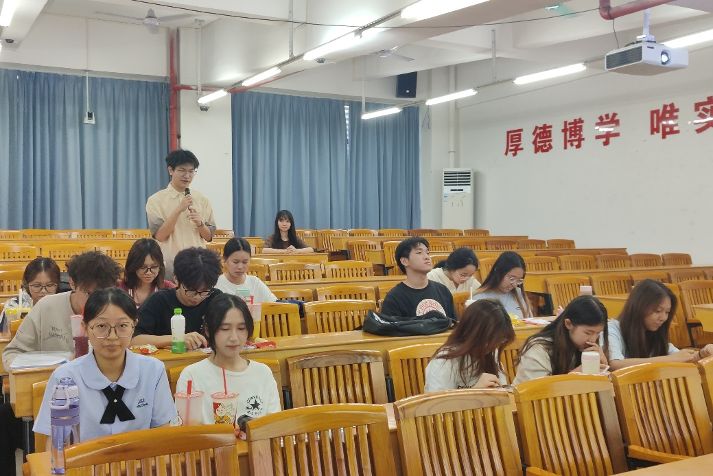 活动开始,全体团员齐唱《义勇军进行曲》,在国歌中重温峥嵘岁月,鼓舞团员青年将青春播撒在民族复兴的征程上。紧接着,团支部书记陈韵颐介绍本次团日活动的主题和内容。本次团日活动以“坚定红色信仰,共赴强国华章”为主题,分为“历史时间线”主题活动、“歌颂祖国拼贴诗”主题活动、“我在广师大向党报国”打卡活动三个部分。