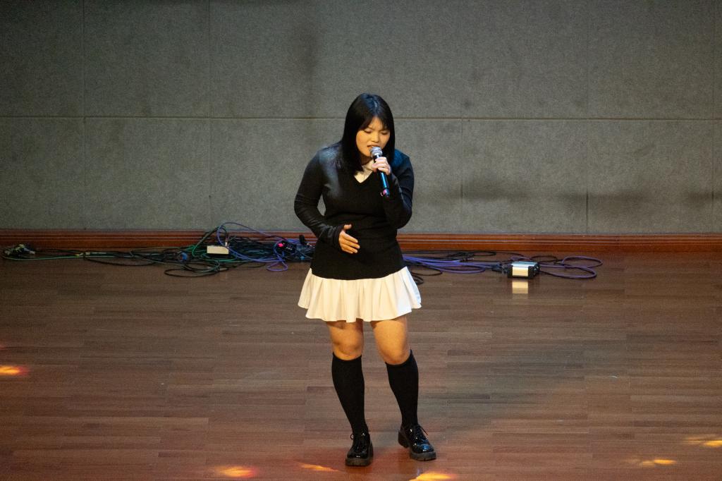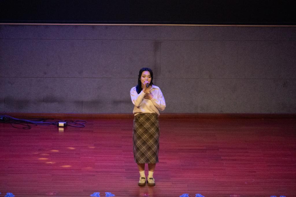 本次大赛经过经过初赛、复赛的激烈角逐,共有16名同学脱颖而出,在决赛中尽显风采。决赛分为“小组pk”和“个人排位”两个环节。小组PK环节,16名选手分为8组进行对决,评委现场评分,每院排名前4的选手晋级下一环节;在个人排位赛,8名选手们热情十足,尽情发挥,用自己动听的歌声和个性化的舞台表现,充分展现了大学生的精神风貌和个人才华。