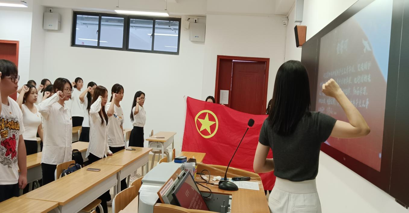 活动开始,主持人介绍了到场的嘉宾及老师,随后入团仪式在庄严的《义勇军进行曲》中拉开帷幕。由主持人宣读新团员名单,经团组织培养考察,中国共产主义青年团taptap点点体育,taptap点点官网入口委员会共有25名24级先进青年被发展入团。随后,郑灿玲老师将团徽逐一授予新团员。那一枚枚熠熠生辉的团徽,在新团员们胸前闪耀,也照亮了他们前行的青春之路。紧接着,在郑灿玲老师的领誓下,25 名青年学生挺直脊梁,高举右拳面向团旗,目光如炬般凝聚着信仰的力量,用铮铮誓言表达了加入共青团的决心与积极进取的信心!“我志愿加入中国共产主义青年团,坚决拥护中国共产党的领导,遵守团的章程,执行团的决议,履行团员义务,严守团的纪律,勤奋学习,积极工作,吃苦在前,享受在后,为共产主义事业而奋斗。”