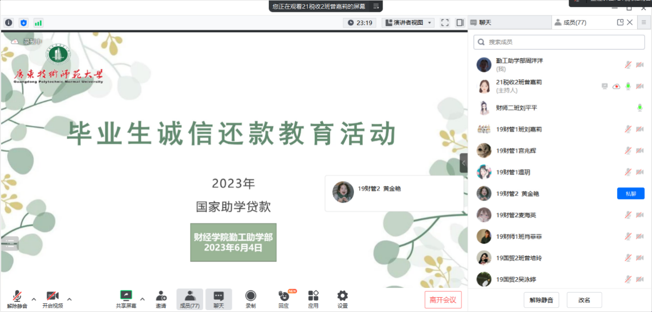 此次会议成功帮助我院毕业生了解、认识国家助学贷款的含义、性质等,并让他们全方位地了解还款的相应流程,为诚信还款以及推动国家助学贷款良性发展奠定了良好基础,此外本次会议还助推了我院助学贷款工作持续健康开展,为该项工作的良性、长远发展注入了高质量的精神推动力。