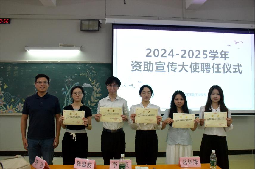 此次聘任仪式的成功举办为我院资助育人工作注入新动力。新聘任的资助宣传大使来自学生群体,熟悉同学需求,能够贴近学生的视角,精准传递奖助学金、助学贷款、勤工助学等方面资助政策,他们不仅是资助政策的“传声筒”,更是连接学院与学生的重要桥梁。相信在学院与资助宣传大使的共同努力下,定能为构建和谐校园、推进教育公平注入源源不断的动力,让每一位学子都能在充满希望的求学路上绽放光彩。