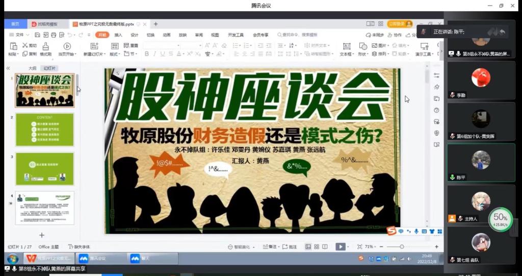 本次比赛以“牧原食品股份有限公司”为案例,要求学生们分析该公司存在的问题及原因,并且评估其采取的策略是否有效,最后为公司提供建议和调整后的战略方案。比赛过程中,9个队伍依次上场,就案例进行激烈讨论和分析。评委老师对每个参赛队伍进行了点评,并提出了针对性的改进意见,如应该注重细节,深入分析,重点要突出,针对案例提出的建议应该具体化等。