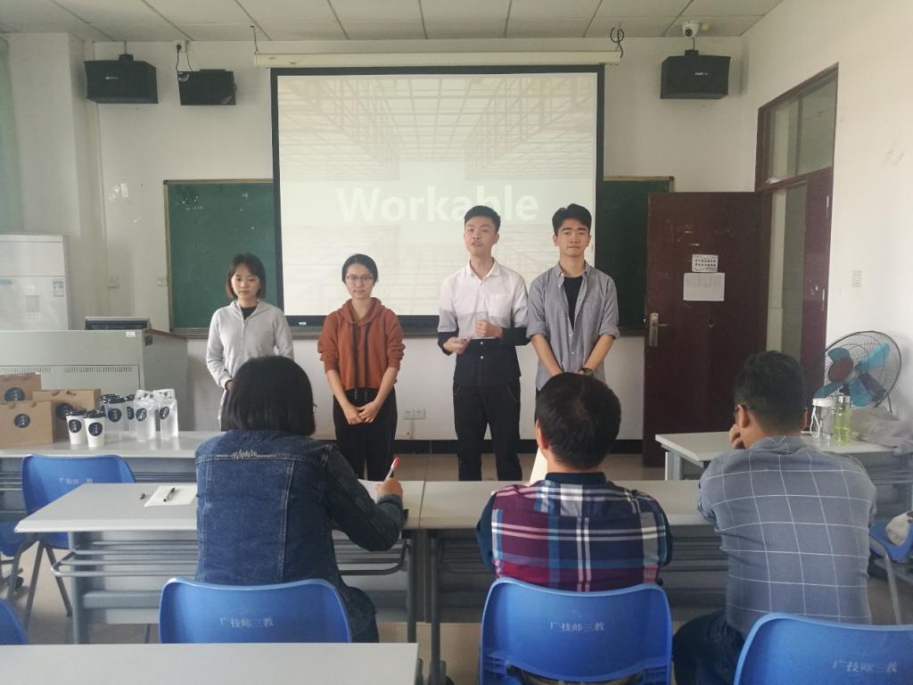 入围校赛的2支创业团队通过PPT+视频的形式,进行了生动的汇报。各位老师进行了有针对性的指导。