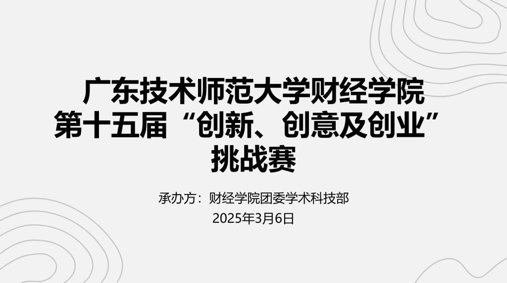 为贯彻落实党的二十大、二十届三中全会提出的“教育、科技、人才是中国式现代化基础性、战略性支撑”精神,进一步加强高校学生创新精神、实践能力和团队精神的培养,激发大学生兴趣与潜能,培养大学生创新意识、创意思维、创业能力以及团队协作精神,taptap点点体育团委于3月6日在白云校区第三教学楼107举办第十五届大学生电子商务“创新、创意及创业”院级选拔赛。