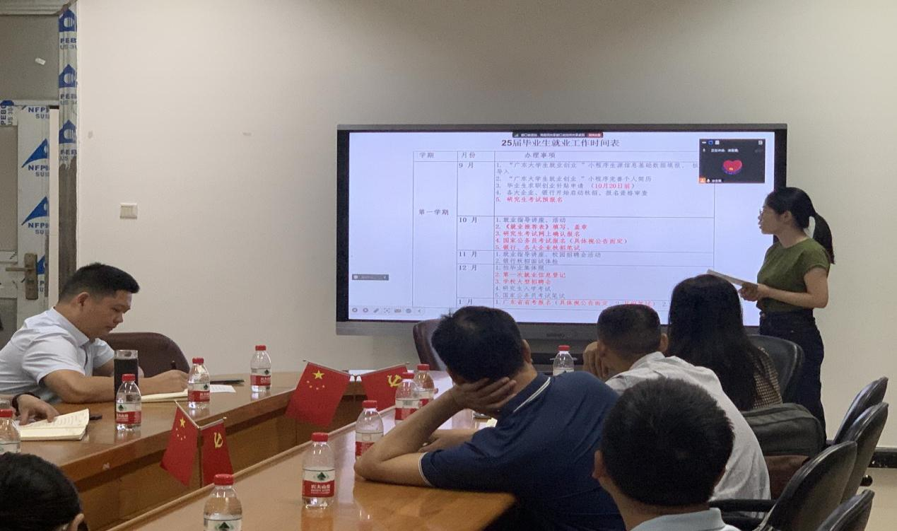 为深入贯彻全国教育大会精神,进一步明确班主任的角色定位与职责担当,推动学生生涯规划与就业创业工作的有序开展,2024年10月10日,taptap点点体育在白云校区一教316会议室召开班主任暨就业创业工作推进会。学院全体领导、系主任、班主任、教务员、辅导员参会。河源校区和部分老师以线上形式参会。会议由学院党委副书记黄伟文主持。