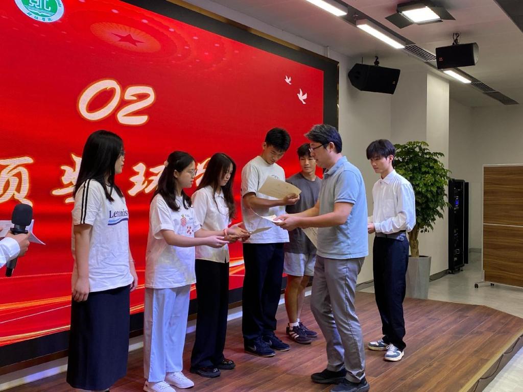 为表彰在考研中成功上岸的优秀学子,进一步树立学风建设标杆,黄伟文副书记与林欣副院长共同为考取硕士研究生的同学颁发 "学风建设突出贡献奖" 。颁奖仪式上,两位院领导与获奖同学亲切握手致意,对他们在考研征程中展现出的拼搏精神和取得的优异成绩表示热烈祝贺,并与获奖同学合影留念,用镜头定格这一见证奋斗成果的荣耀时刻。此次表彰不仅是对考研学子的肯定,更旨在激励全院学生以榜样为引领,在学术道路上勇攀高峰,共同营造积极向上的优良学风。