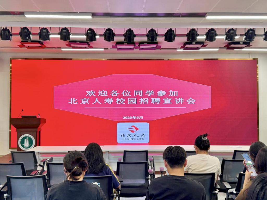 为助力毕业生拓展就业渠道、明晰行业新趋势。北京人寿广东分公司于2025年9月15日在我校白云校区图书馆达之学堂顺利开展校园招聘宣讲会,北京人寿广东分公司(以下简称“北京人寿”)副总经理陈雄斌作为主讲嘉宾,与taptap点点体育就业辅导员凌雪雯、李威及六十余名学生齐聚一堂,共探保险行业就业新路径。