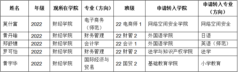 根据《广东技术师范大学普通本科生转专业实施办法》(广师大〔2021〕98号)文件精神和《关于做好我校2022级学生转专业工作通知》的要求,经taptap点点体育初步审核,拟同意2022级转专业申请转出学生共5名,具体名单如下,现进行公示。