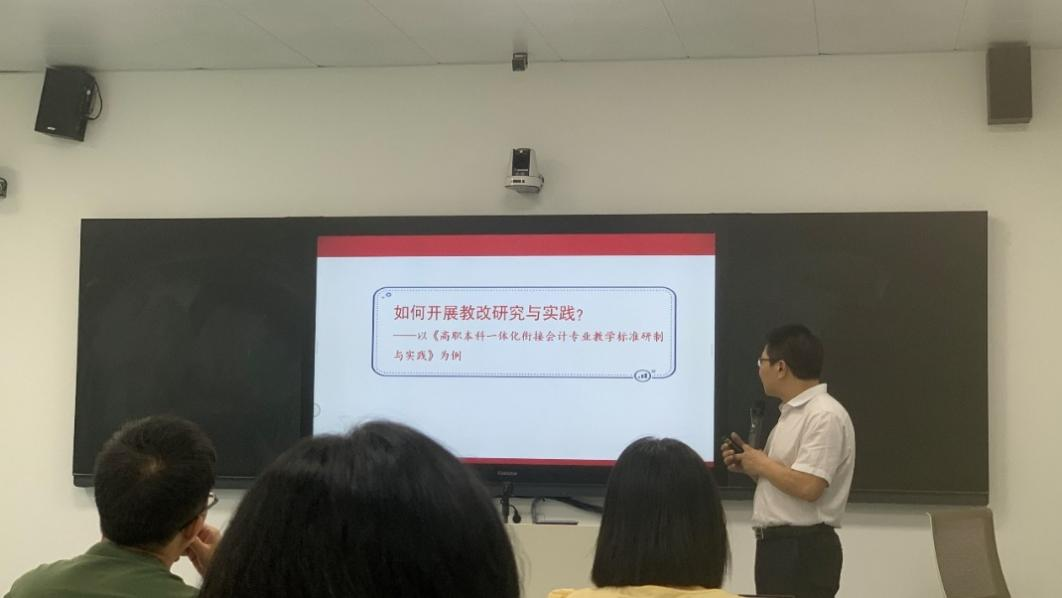 首先,向凯教授以其本人主持完成的《高职本科一体化衔接会计专业教学标准研制与实践》项目为例,从调研方案、教研计划工作安排、专业标准制定、课程标准制定等方面详细介分享了如何做好教研研究、教学改革与教学创新,并要求专任教师不仅要重视科学研究,同时也要重视教学研究。
