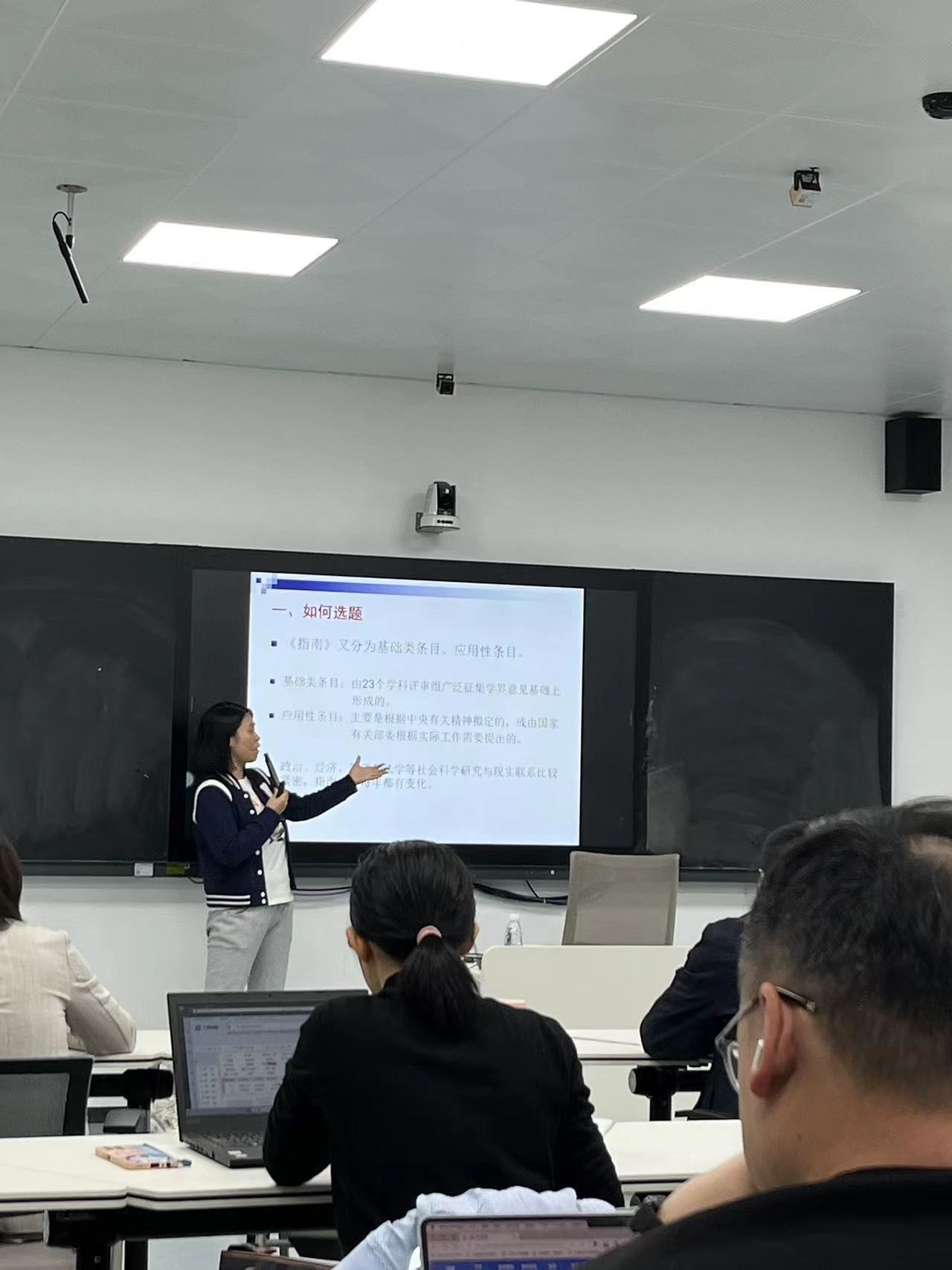 曾广桃博士作了《广东省社会科学基金项目申报经验》的分享,她从一个新的角度去分享自己的申报经历和成功的经验,现场的老师都十分认真的聆听,感觉仿佛自己经历一次申报的过程。辛娜老师受邀作为点评人,她分析了曾老师的演讲内容,还现场答疑解惑,提出自己对曾老师存在疑问的见解和经验分享。现场气氛十分活跃,不少老师也提问,发表自己的看法。