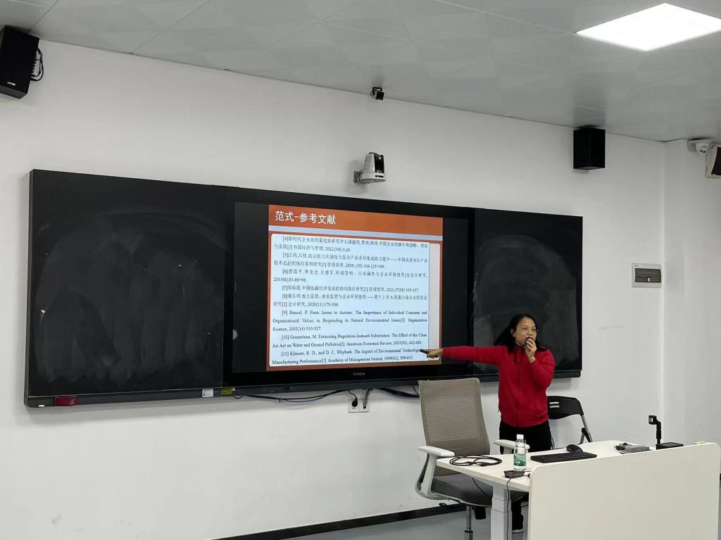 辛娜教授作了《国家社会科学基金项目选题与撰写经验》的报告。她从如何选题,如何撰写申请书,如何写具体的研究内容都做了非常详细具体的汇报;她鼓励年轻老师多去参加学术会议,最好与导师与国内外学者进行探讨和学习,才能获得最新的相关行业研究动态。她毫无保留地分享了自己多年的申请经验,各位老师都认为讲解内容干货满满,受益匪浅。钟晓君博士做点评,他重点总结了辛娜老师的演讲内容,并提出了自己对一些问题的看法。
