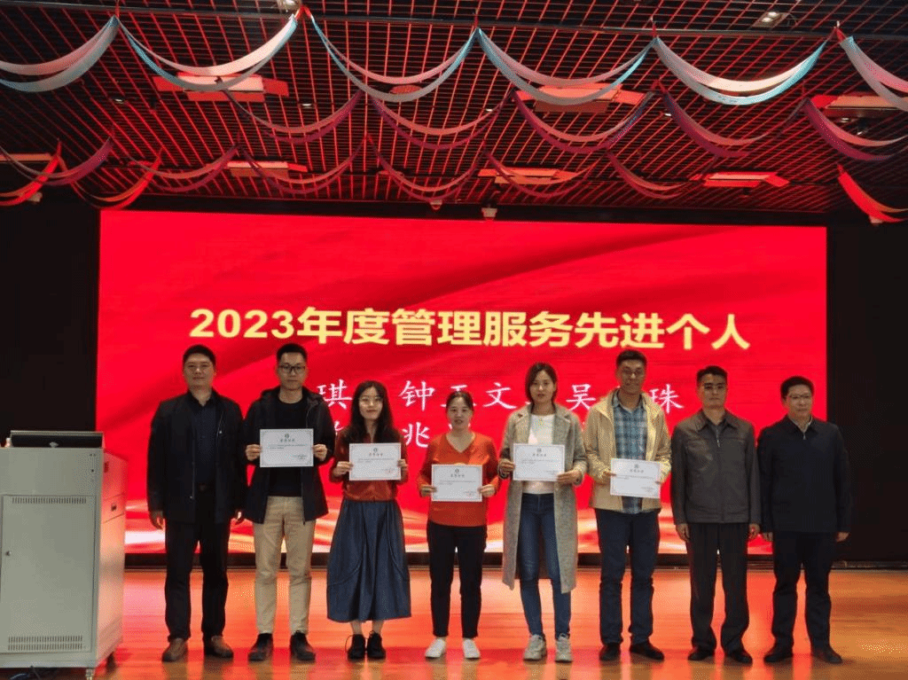2023 年度管理服务先进个人:欧阳兆星老师(辅导员),林伟婷老师(辅导员),钟玉文老师(教务员),吴秀珠老师(研究生秘书),卢琪老师(实验室主任与工会委员)
