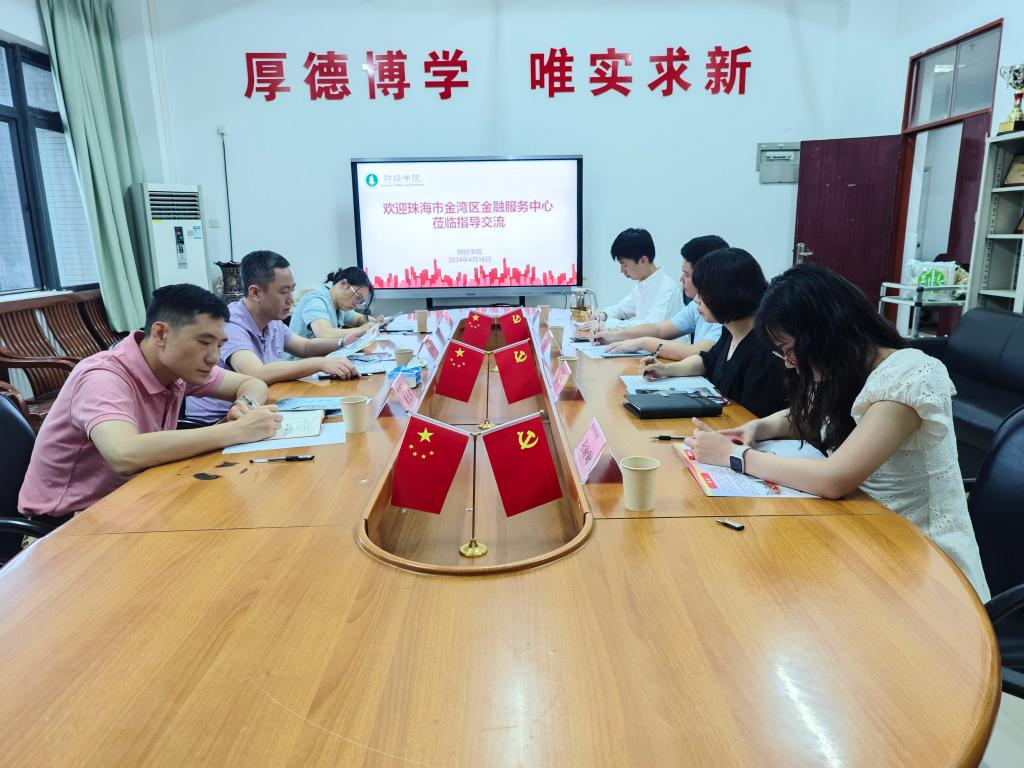 2024年4月18日,珠海市金湾区金融服务中心主任曾涛一行莅临taptap点点体育调研交流。taptap点点体育党委副书记黄伟文、副院长周清、校就业工作科张盼盼参与此次交流。