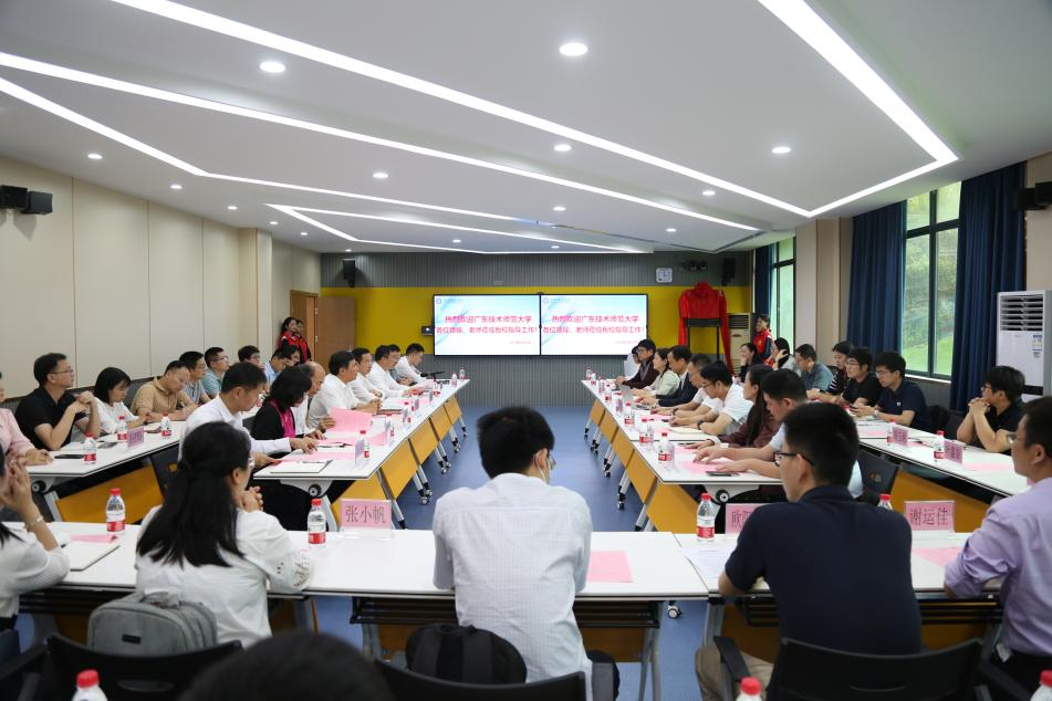在紫金县职业技术学校的结对签约仪式上,紫金县职业技术学校党委书记陈俊杰对广师大结对专业帮扶共建团队一行的到来表示热烈欢迎,并对广师大此次开展的融入式帮扶表示衷心感谢。陈俊杰首先从师资队伍、专业设置、学校建设几方面介绍了紫金职校的基本情况,并围绕毕业生就业,校企合作以及三二分段人才培养模式等方面讲解了学校教育培训的相关情况,最后根据学校专业设置落后,实训场地设施设备未能满足时代要求等目前面临的发展问题介绍了此次结对专业帮扶需求。