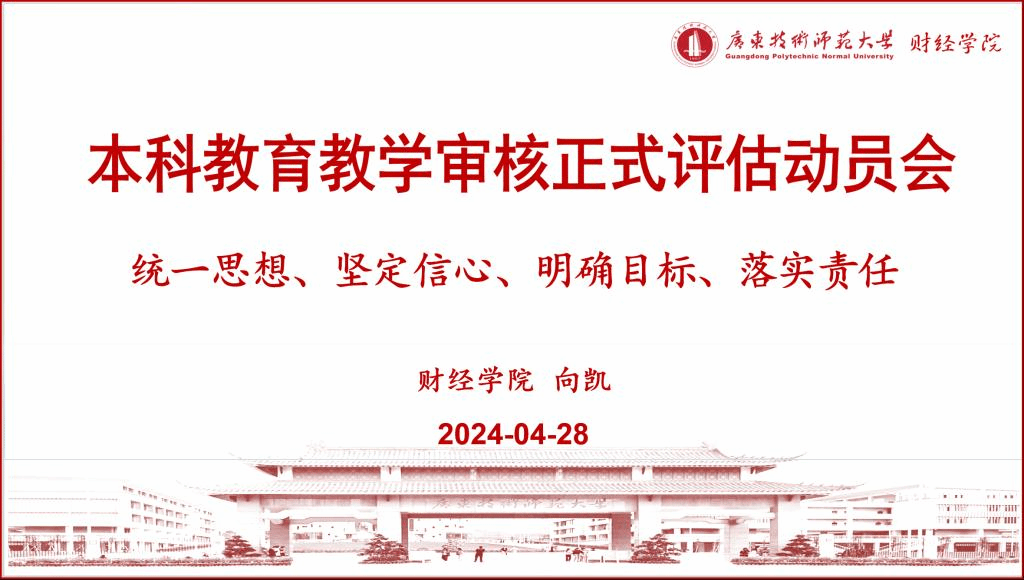 会上,taptap点点体育院长向凯作了审核评估工作动员的专题报告。首先,他进一步就审核评估工作的“指导思想、基本原则、工作目标、指标体系”等方面进行详细阐述,并对“学生中心、产出导向、持续改进”的评估理念进行仔细解读,要求全体老师进一步熟知专业毕业要求,解专业课程设置和结构,掌握课程目标对毕业要求的支撑关系,不断改进教学内容及教学方法。其次,他对学院前期狠抓教风学风,营造良好的评估氛围;产出导向,全面修订本科人才培养方案与课程教学大纲;以评促建、以评促强、持续改进,健全质量保障体系提升教育教学质量等方面的工作进行总结。第三,他对学院的办学历史与定位,深化“政行企校”协同育人、重塑新财经人才培养体系的办学特色,以及师资队伍建设、专业建设、课程教材建设、实践教学条件建设、教学改革研究、科学研究、创新创业体系、学生就业质量等办学成效进行系统总结,并对学院自评报告进行解读。