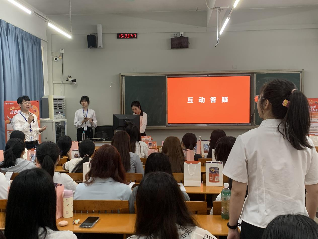 万达商管广州分公司招聘经理胡诗梅以《青春奋斗季,共赴好未来》为题,介绍万达集团和万达商管集团、“万新生”招聘项目、岗位职责、招聘要求和薪酬待遇等内容,并在互动答疑环节为毕业生详细解答工作城市选择、培训晋升途径和住宿生活福利等具体问题。胡诗梅表示,万达广场及其联发品牌遍布各个城市地区,为毕业生求职的地域选择提供了极大的便利和空间,尤其是面对初入职场的毕业生,万达商管集团量身定制“万新生”培训项目,提供系统的培训和辅导,能够助力毕业生适应工作要求和尽快历练成长。