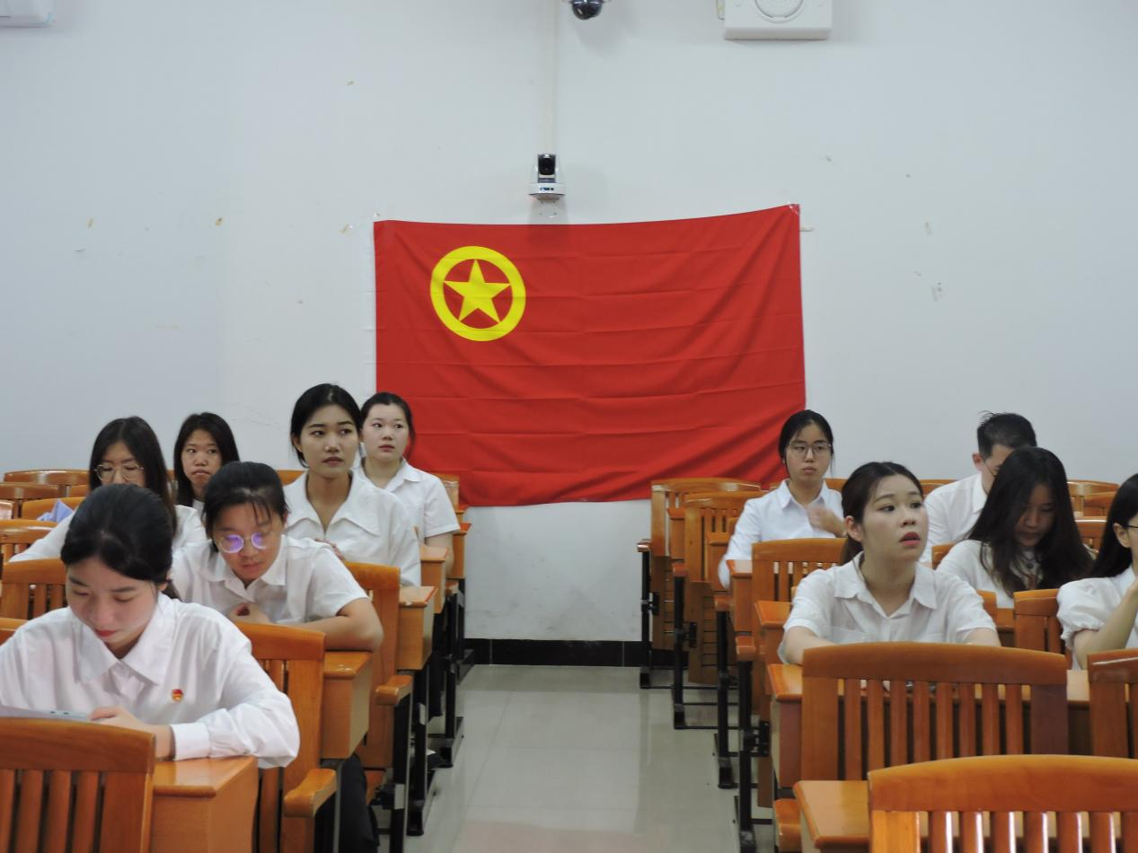 紧接着新发展团员代表翟婧慈上台发言,戴上团徽,今后的一举一动,将代表整个团体的形象。作为一名新团员,她向组织保证以积极向上的精神面貌投身祖国建设,努力学习,拼搏创新,成为有为的青年。优秀团员代表谢钰婷上台发言,谈到了对团的深刻认识,号召新团员以更加坚定的信念、更加昂扬的斗志、更加务实的作风,为实现中华民族伟大复兴的中国梦贡献青春力量。陈逸珺老师发表了铿锵有力的致辞,希望大家时刻以团员标准要求自己,认真接受政治训练、加强政治锻造、追求政治进步,积极向党组织靠拢,以成长为一名合格的共产党员为目标、为光荣,努力成为社会主义事业的合格建设者和可靠接班人,在中国式现代化建设的新征程上挺膺担当。最后,全体起立,奏唱中国共产主义青年团团歌。