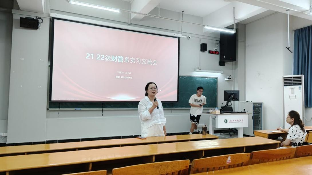 5月9日下午,财管系在白云校区三教101召开了实习交流会。本次交流会旨在搭建一个实习交流的平台,让21级学生分享他们在实习过程中的收获与体会,为即将踏入实习岗位的22级同学提供宝贵的经验和建议。财务管理系副主任王品博士、财务管理专业负责人罗映红老师,21级17位实习生代表以及22级的财务管理专业学生参加了此次会议。