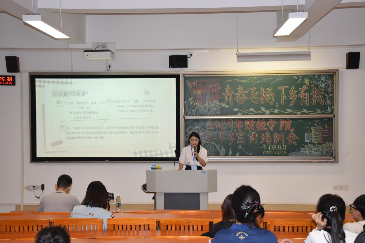 紧接着,学术科技部干事孙雪瑛同学为大家详细阐述了队伍结对、活动的策划书撰写、以及总结评估等各个环节的注意事项,使同学们对“三下乡”的整个过程的认识更加深刻,确保每支队伍都能清晰了解自己的职责和任务。