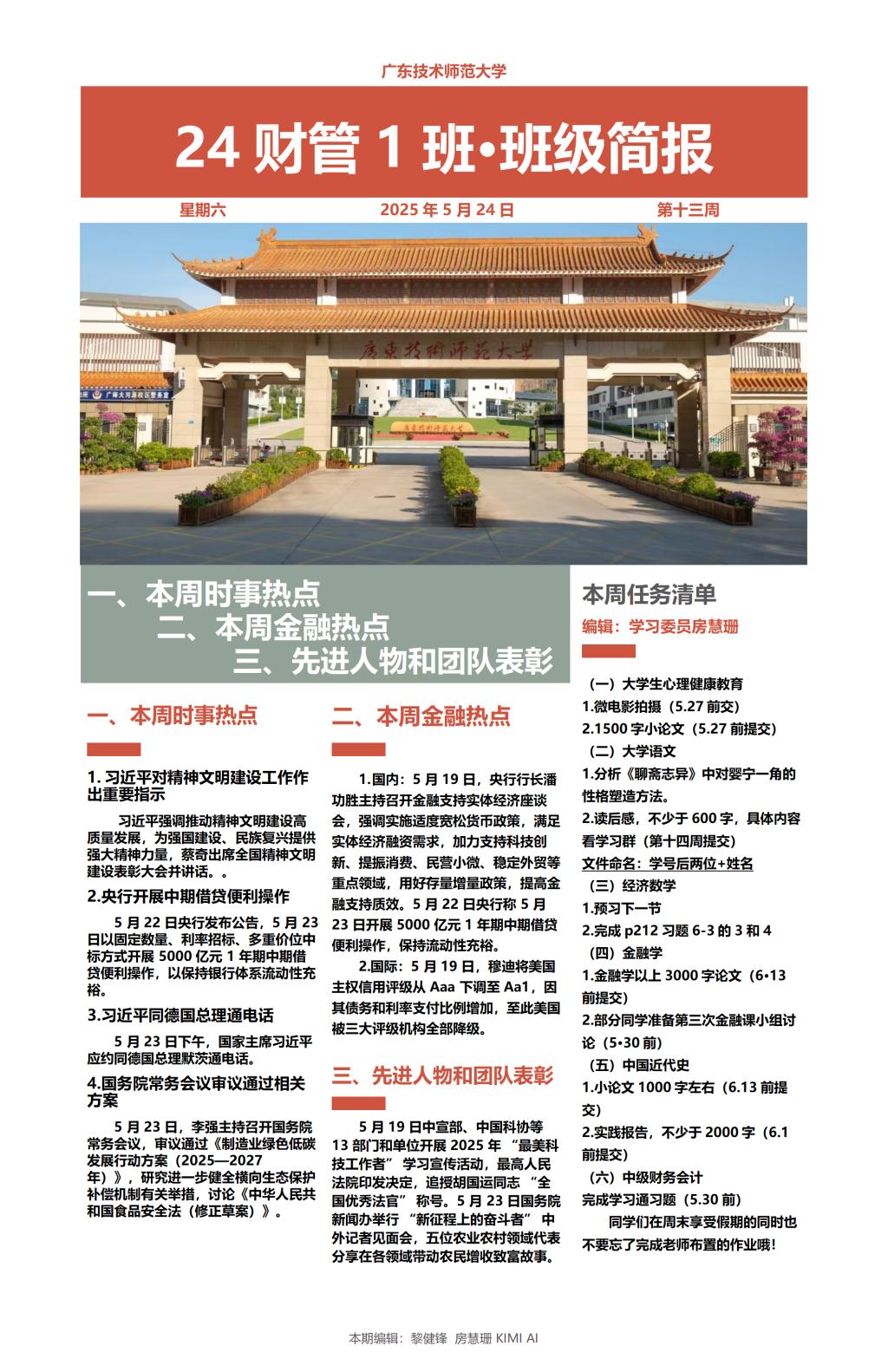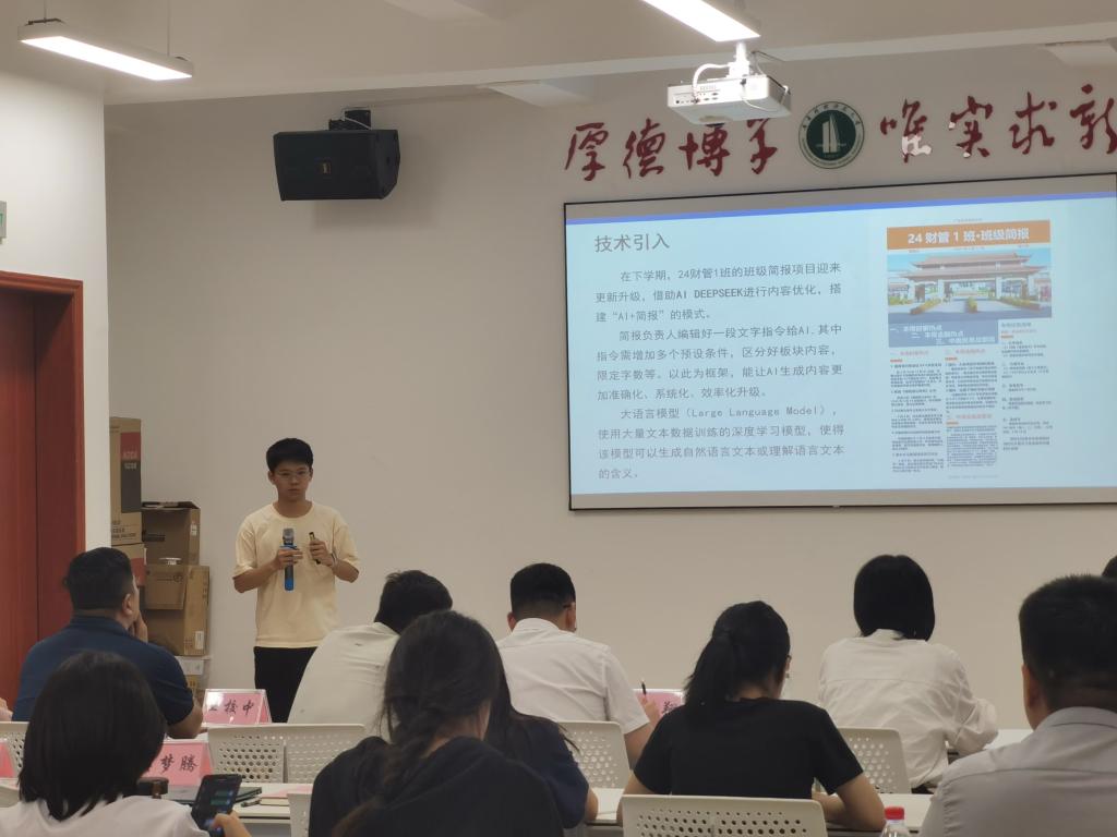据悉,该项目作品系2024财务管理1班的班级特色品牌项目,团队成员均为大一年级的班长兼团支书,他们通过对比甄选当前各类AI智能体的特性,不断对工作指令进行优化,从而利用AI工具一键式赋能班级简报生成,并定期在班级社交平台上推送,极大地提高基层班团工作的效率与质量。每期的班级简报内容涵盖了时事政要热点、财经行业动态、红色历史故事、课程任务清单和班级管理动态等栏目,既能提升班级同学的职业道德素养,又能不断增强班级凝聚力。该作品在初赛数十件作品中脱颖而出,在决赛现场也获得了评委老师的一致好评。