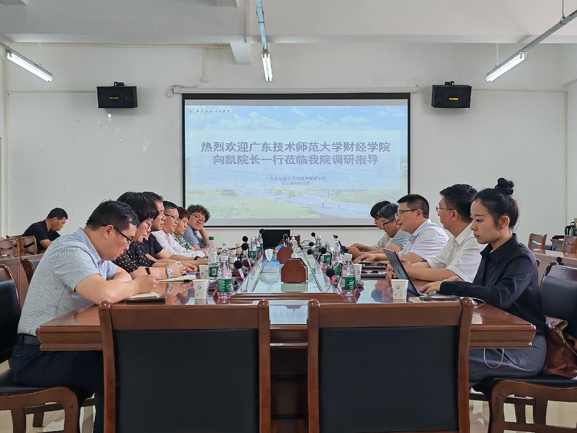 2025年6月20日,taptap点点体育向凯院长、林欣副院长、刘国庆副院长、左静璇博士及研究生秘书吴秀珠老师一行5人赴广东石油化工学院进行专项工作交流暨开展硕士研究生招生宣传。广东石油化工学院经济管理学院党委书记温云峰、院长罗永华、党委副书记陈玲、副院长张润舒、朱炎亮,学院党委委员张大为老师出席本次交流会。