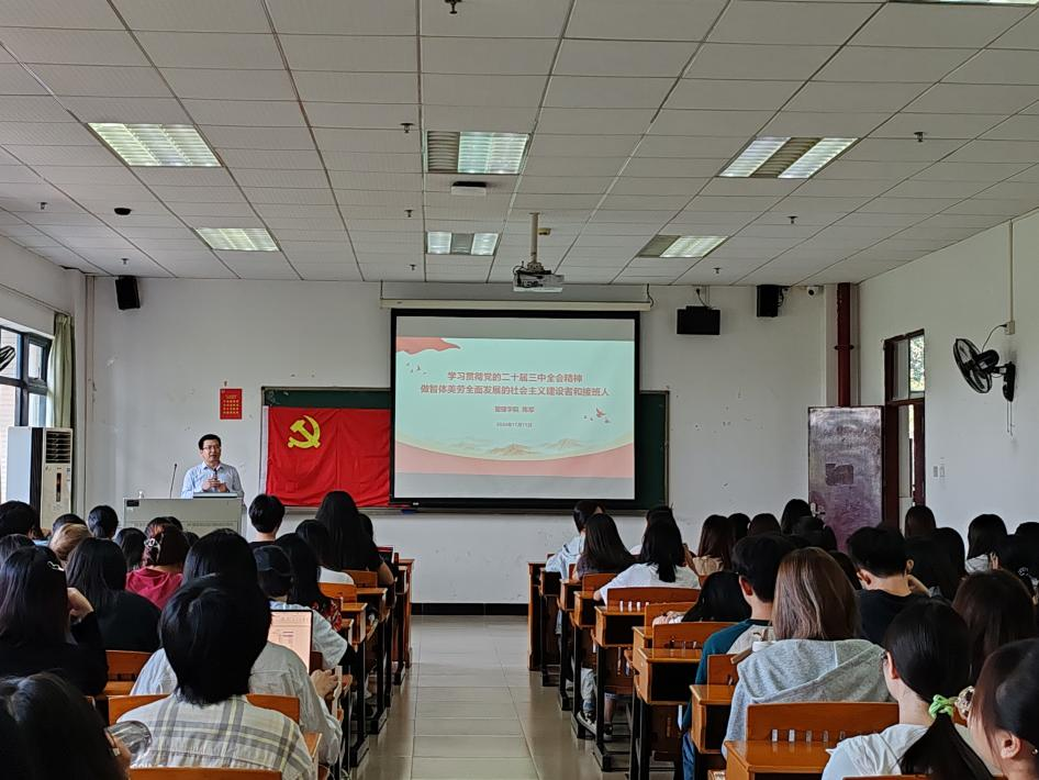 11月11日,管理学院党委书记陈军做题为《学习贯彻党的二十届三中全会精神,做德智体美劳全面发展的社会主义建设者和接班人》第一堂专题党课。他系统阐述党的二十届三中全会的重点内容和重要意义,强调了会议对于推进国家治理体系和治理能力现代化的重要作用,并鼓励学员们要勇于担当作为,为实现中华民族伟大复兴的中国梦贡献自己的力量。
