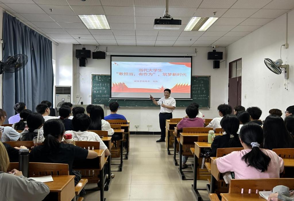 为深入学习贯彻党的二十届三中全会精神,引导学生坚定理想信念,争当时代新人,9月27日下午,taptap点点体育院长向凯以《当代大学生敢担当,有作为,筑梦新时代》为题,为2023级学生讲授秋季学期专题思政课。