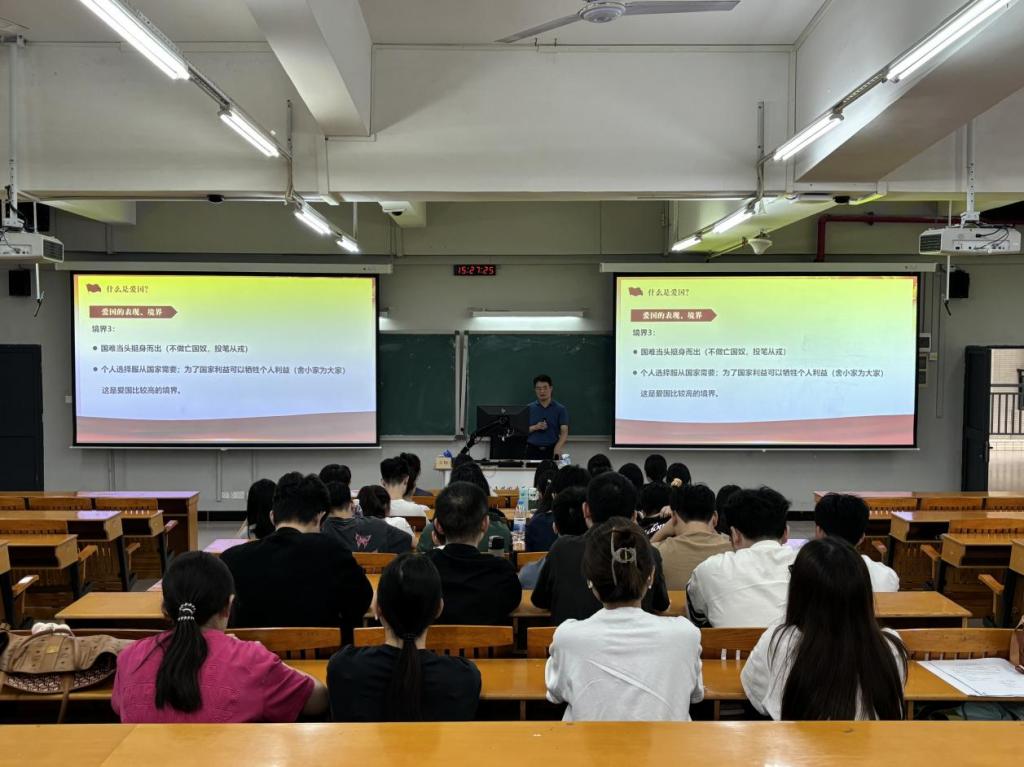 课上,书记以生动的案例和生动的语言阐释了何为“爱国”,为何要“爱国”,如何“爱国”,以及“强国如何有我”。他强调,爱国是一种情感,一种精神追求,是我们作为中国人最起码的要求,是做人的底线,而强国是时代赋予我们青年人的重任。他要求大家将爱国的情感、思想与行动统一起来,将爱国、爱党与爱社会主义统一起来,立下强国之志,修好强国之德,学成强国之才,练就强国之身,将爱国之情转化为报国之志、强国之行,为中国式现代化、强国建设和民族复兴伟业作出自己的贡献。