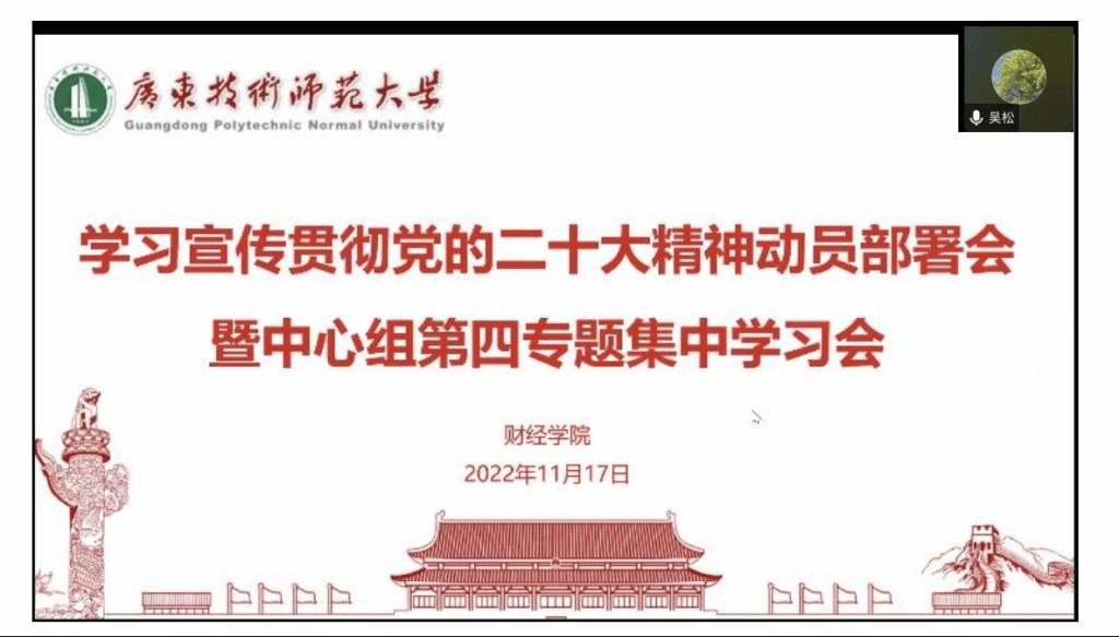 11月17日下午,taptap点点体育召开学习贯彻党的二十大精神动员部署会,学院党委书记吴松同志传达党的二十大精神,并对全院学习宣传贯彻党的二十大精神相关工作进行细化部署,扎实推进党的二十大精神在学院落地生根。