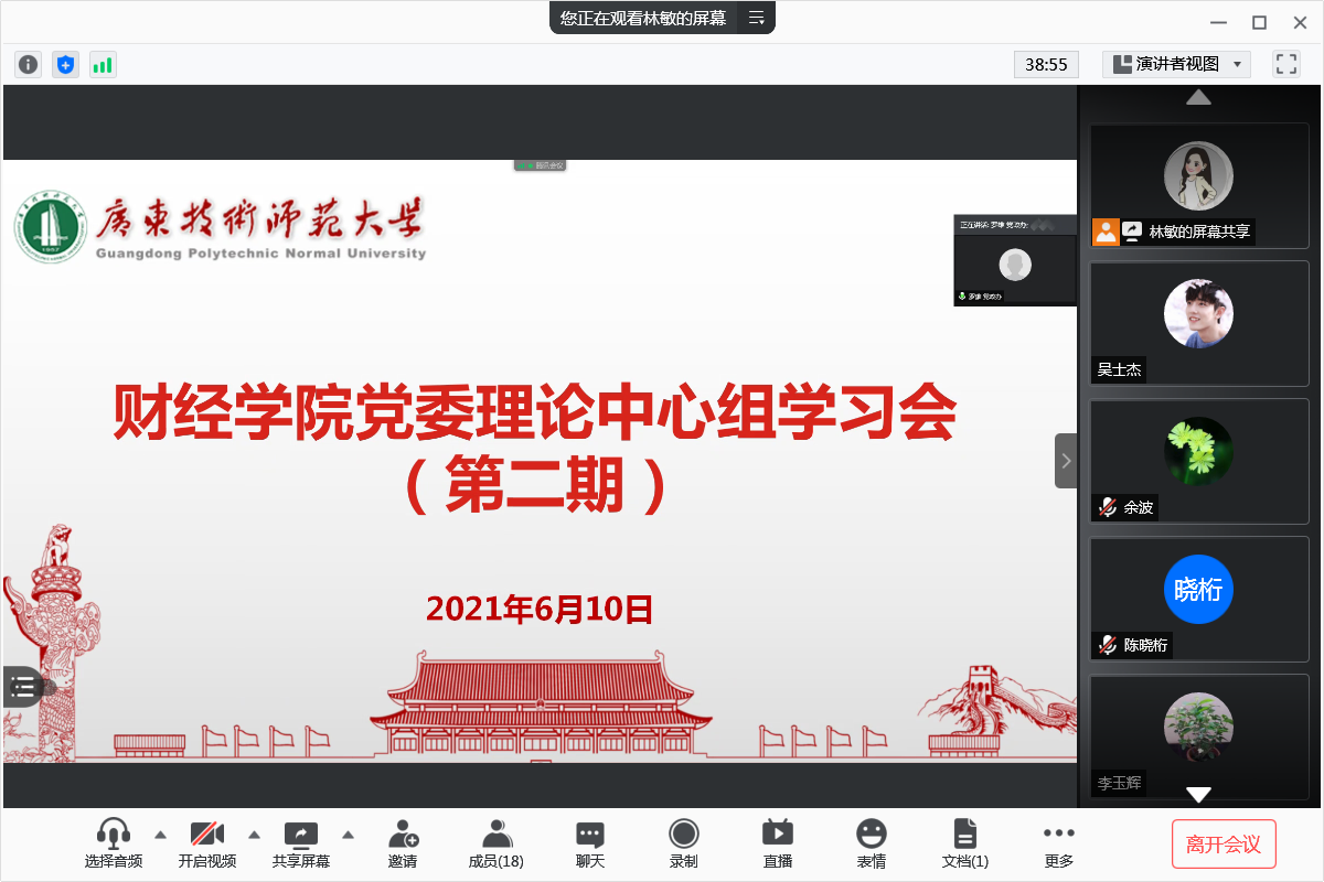 6月10日,taptap点点体育党委在腾讯会议召开线上理论中心组学习会,学院党委委员和全体支部书记参会,会议由学院党委书记吴松主持。
