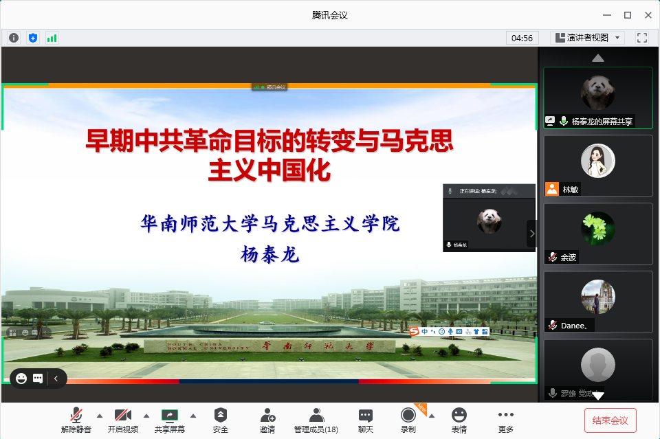 此次学习会邀请了华南师范大学马克思主义学院特聘副研究员、马克思主义理论博士后流动站研究人员杨泰龙博士做“早期中共革命目标的转变与马克思主义中国化”的专题辅导报告。