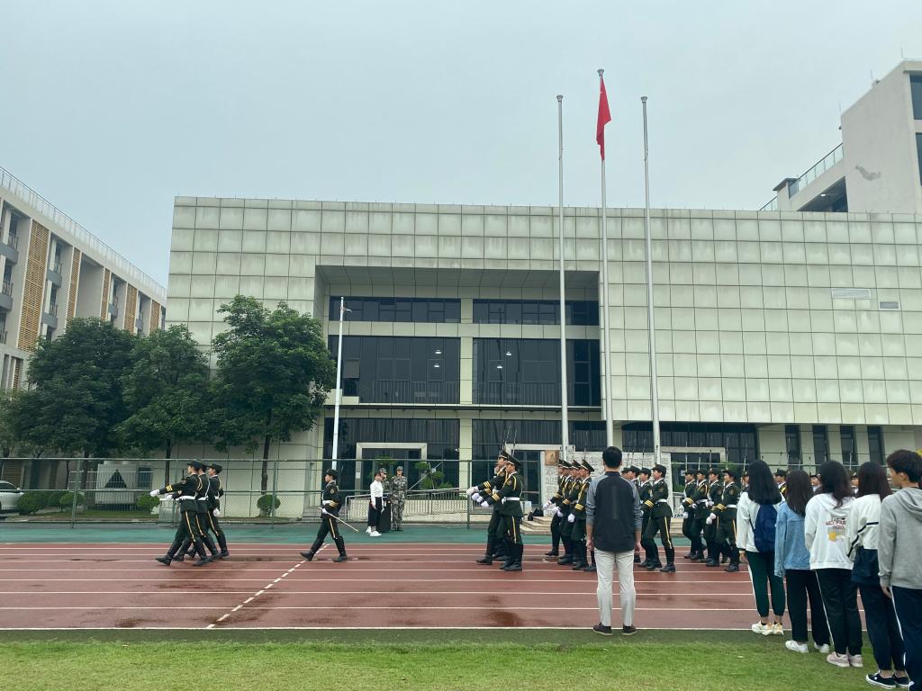 早晨的天空飘着零星小雨,仪仗队迈着铿锵有力的步伐,伴随着老师和同学们的国歌声,庄严地升起了五星红旗。一日之计在于晨,国旗下的讲话勉励着同学们争做新时代进步青年,开启崭新的一天,不负韶华,只争朝夕。
