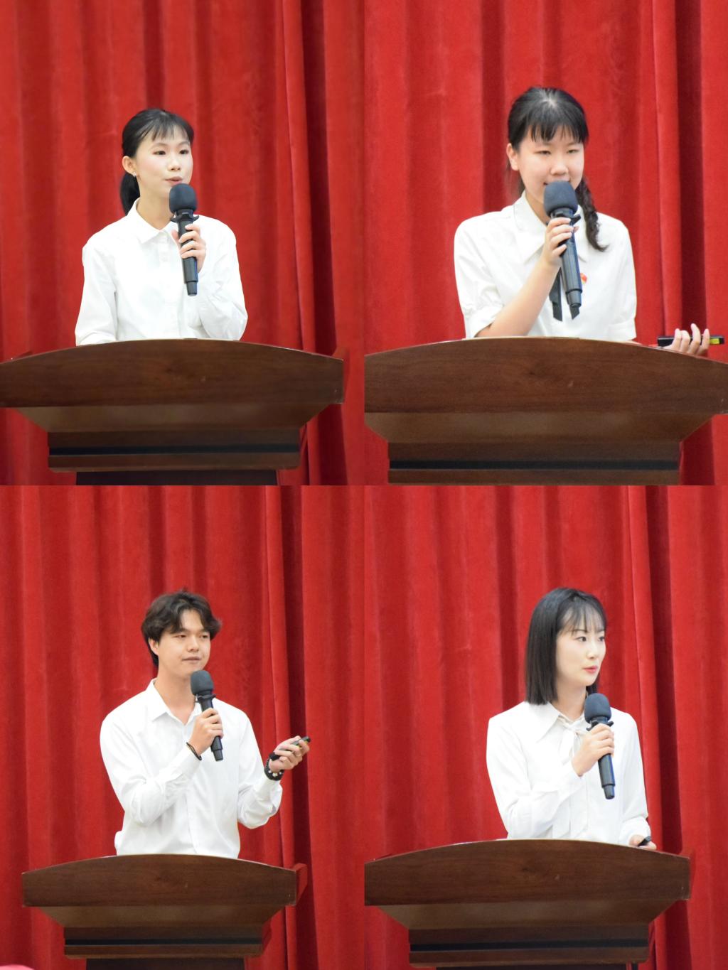 研究生毕业生代表朱佳、本科生代表杨靖雪、潘镇杰、林周筠依次发言,分享对党员责任与职业使命的理解,一致表达了对母校培养的感恩之情,承诺将学到的专业知识和党性修养转化为服务社会的实际行动。随后,在学院党委书记吴松的领誓下,全体与会党员重温入党誓词,铿锵誓言彰显了投身强国建设的坚定决心。大会在《国际歌》的激昂旋律中圆满落幕。