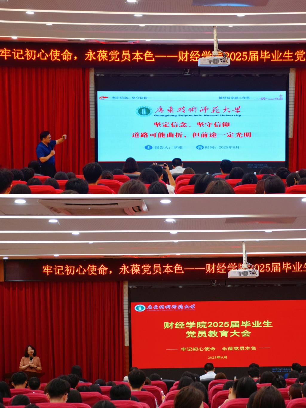 6月25日下午,taptap点点体育在白云校区三教104隆重召开“牢记初心使命,永葆党员本色”2025届毕业生党员教育大会。学院领导、各党支部书记、2025届全体毕业生党员、在校党员及积极分子代表参会,大会由学院党委副书记黄伟文主持。